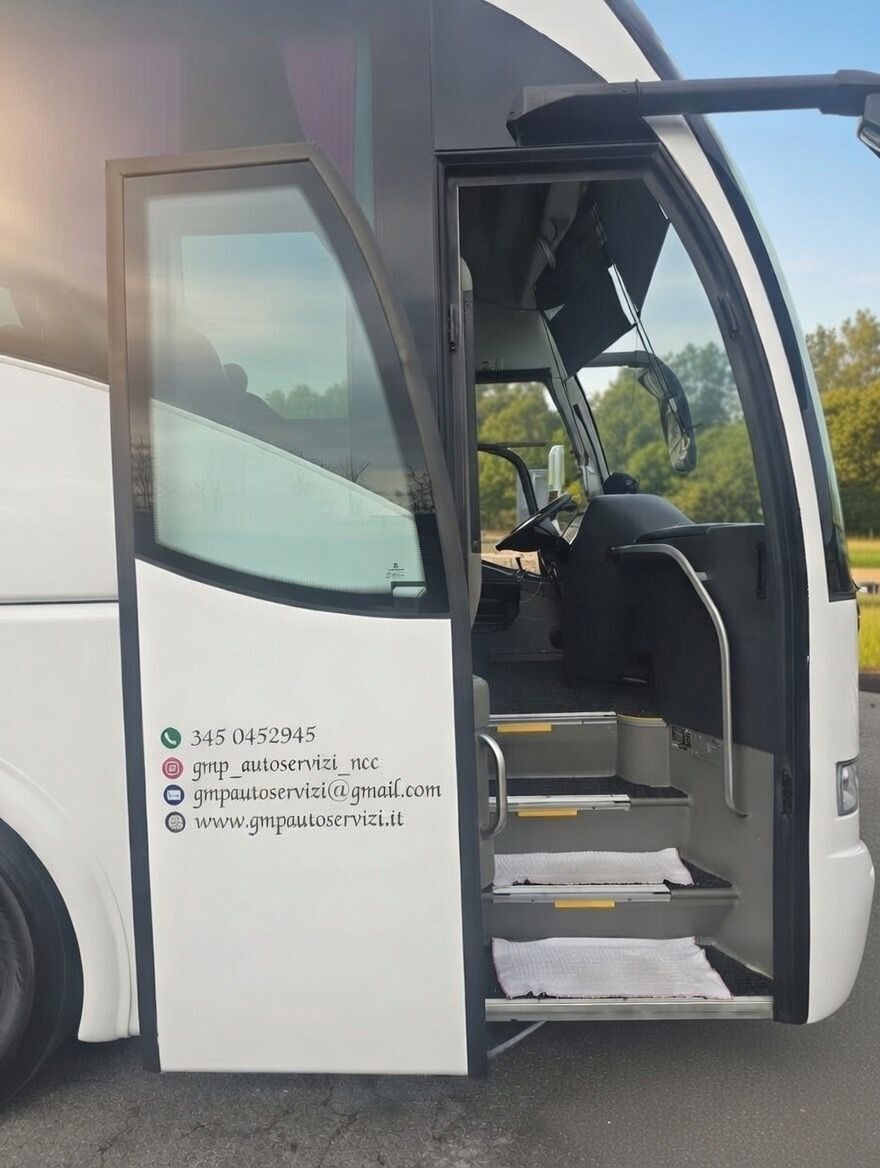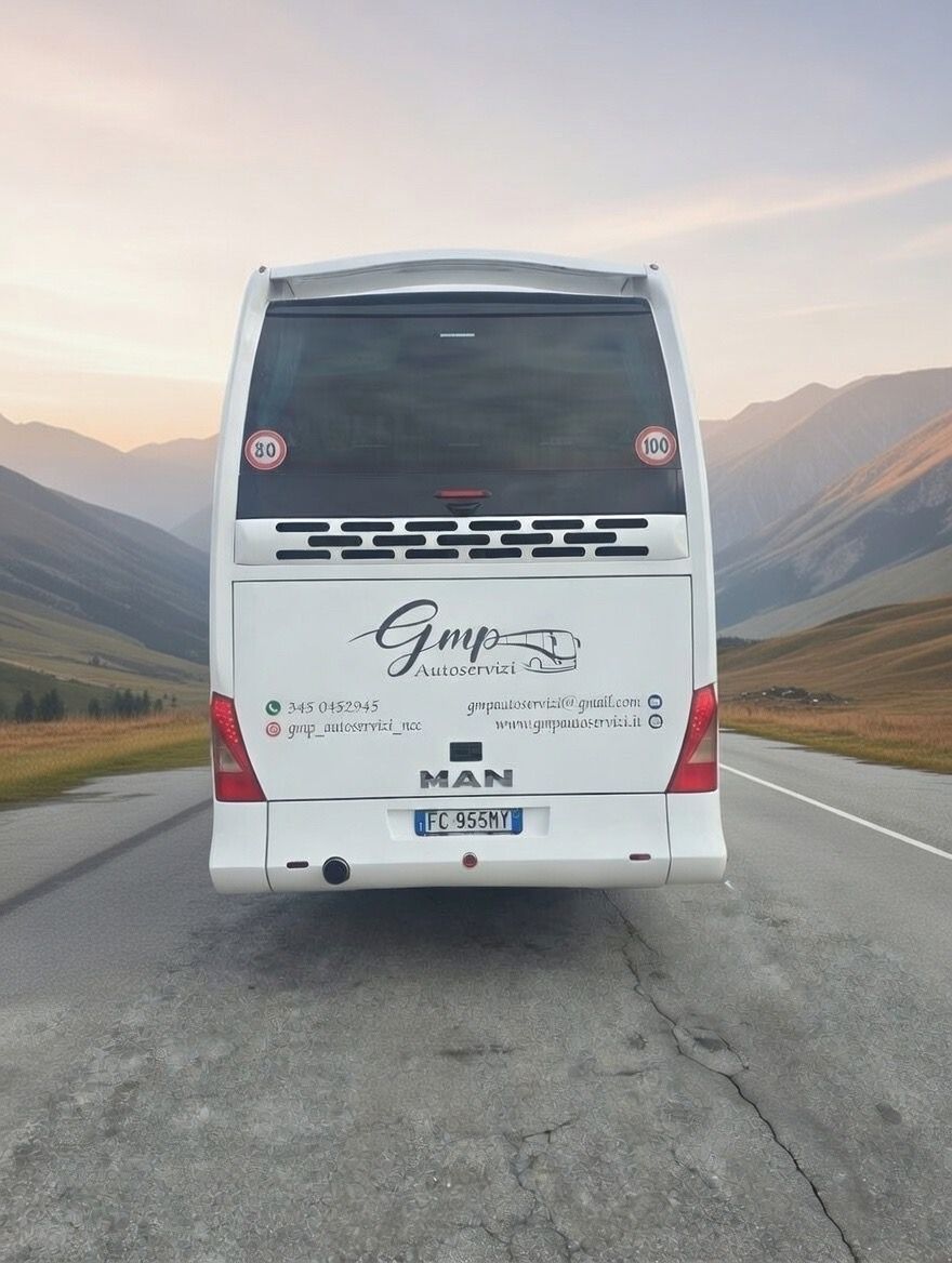 GMP Autoservizi offre inoltre un servizio di noleggio autobus con conducente di alta qualità, ideale per ogni esigenza di trasporto: trasferimenti aziendali, gite scolastiche, eventi, congressi, escursioni, pellegrinaggi, trasferimenti aeroportuali e molto altro.